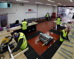 Based at our Shipley Headquarters, the ‘Jack Pennington Limited – Off-Site Service Centre’ has an expanded, dedicated area with its own experienced staff. It enjoys instant access to our vast range of products and our fleet of delivery vehicles which cover the whole of the UK. If you have any requirements for cut lengths, frames, brackets or pre packed kits then please contact our experienced team by Contacting Us.